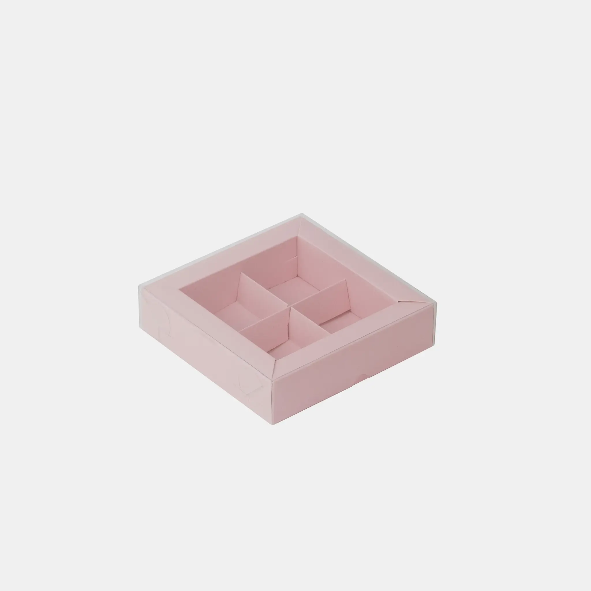 Коробка для 4 конфет с пластиковой крышкой (розовый)