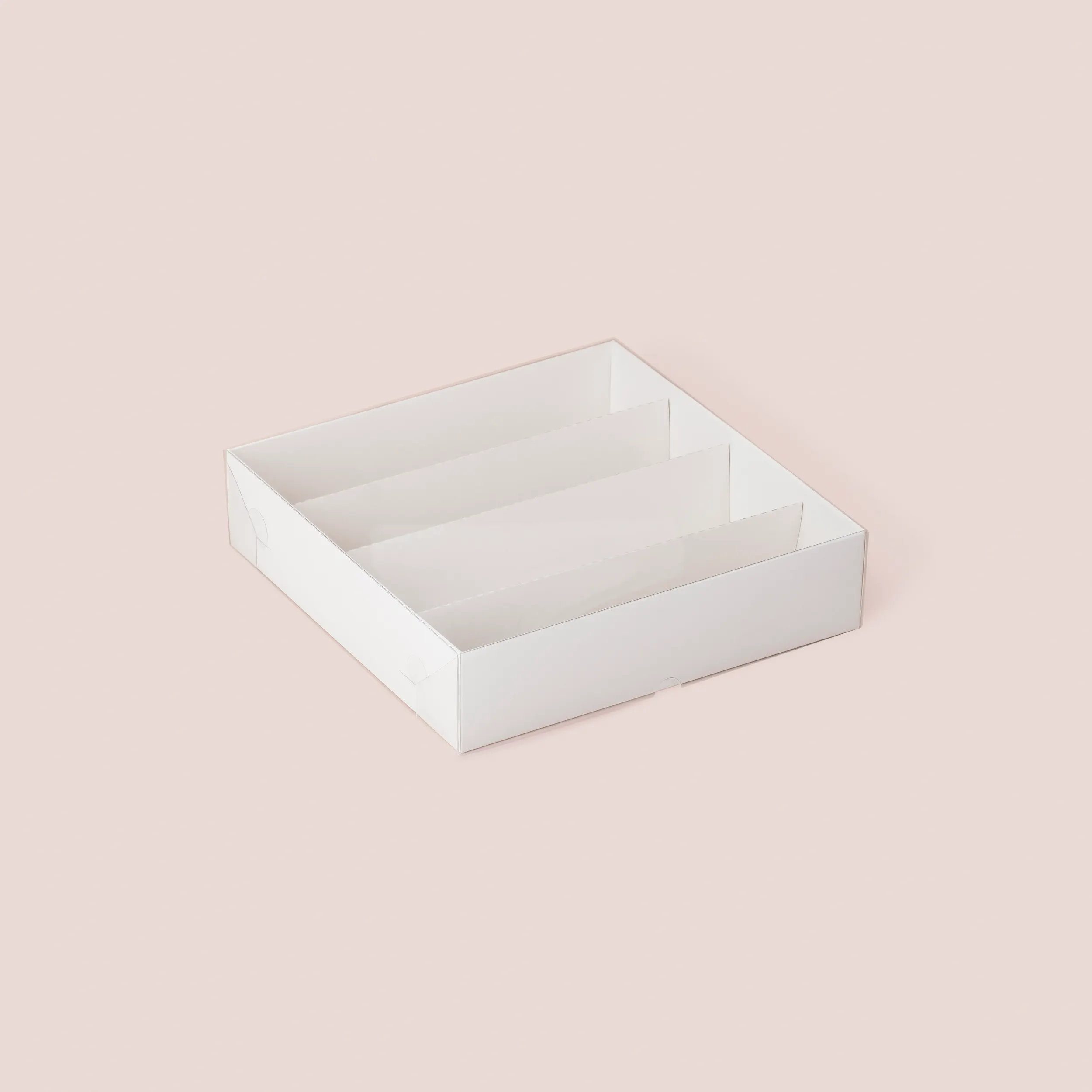 Коробка для макаронс в 3 ряда с пластиковой крышкой 227*227*55 мм