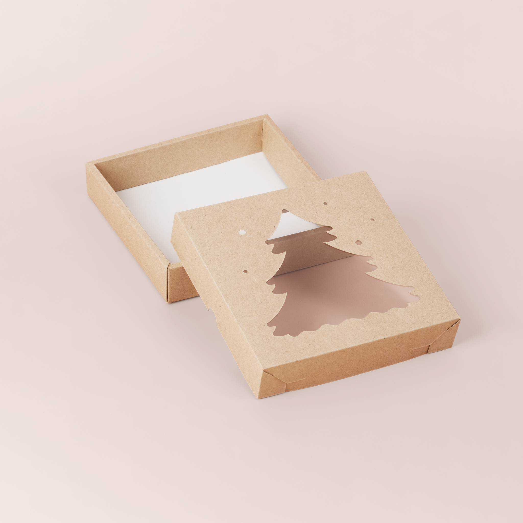 Коробка для пряников с окном ёлка 155*155*35 мм (крафт)