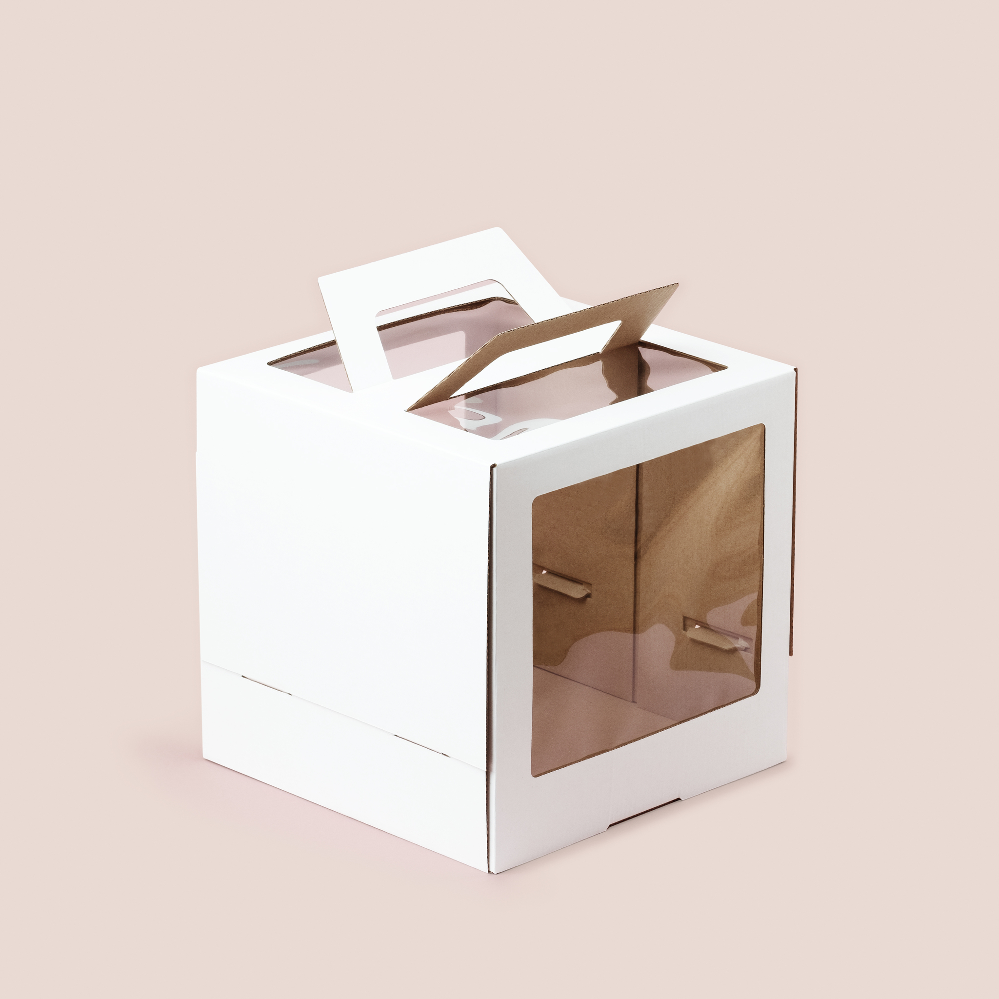 Коробка 220*220*250 мм для торта с двумя ручками и тремя окнами, гофрокартон