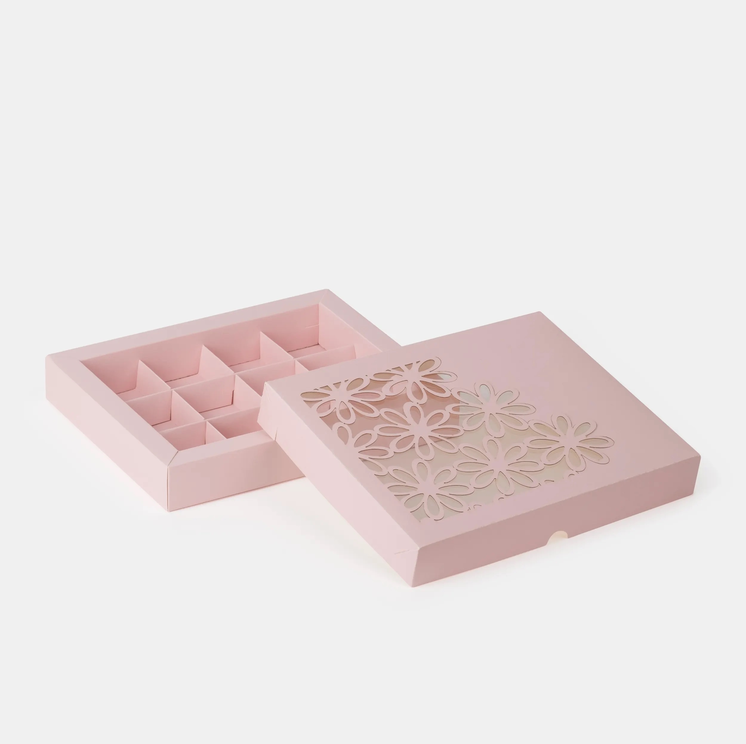 РОЗОВЫЙ Коробка для 12 конфет с окном "Ромашка"