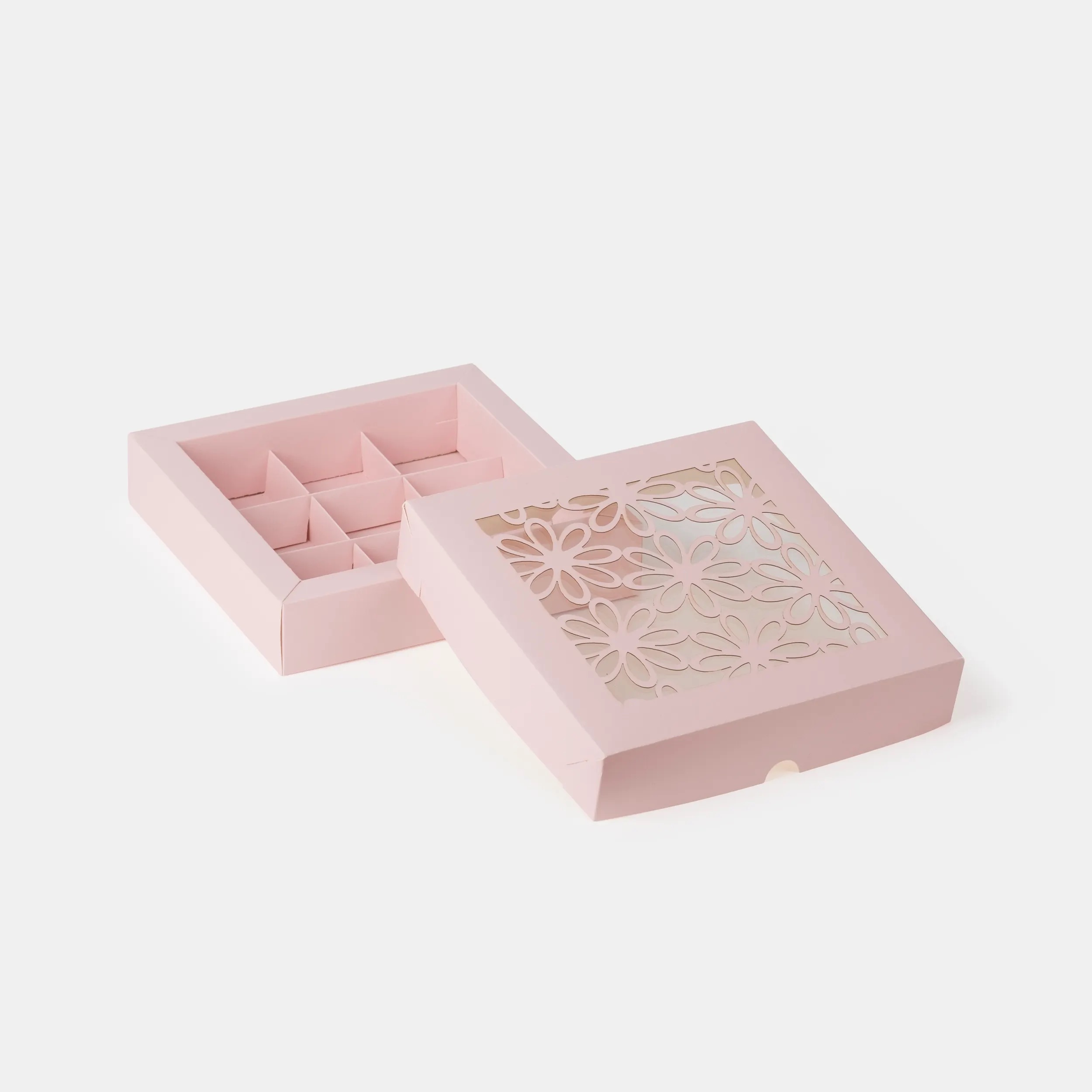 РОЗОВЫЙ Коробка для 9 конфет с окном "Ромашка"