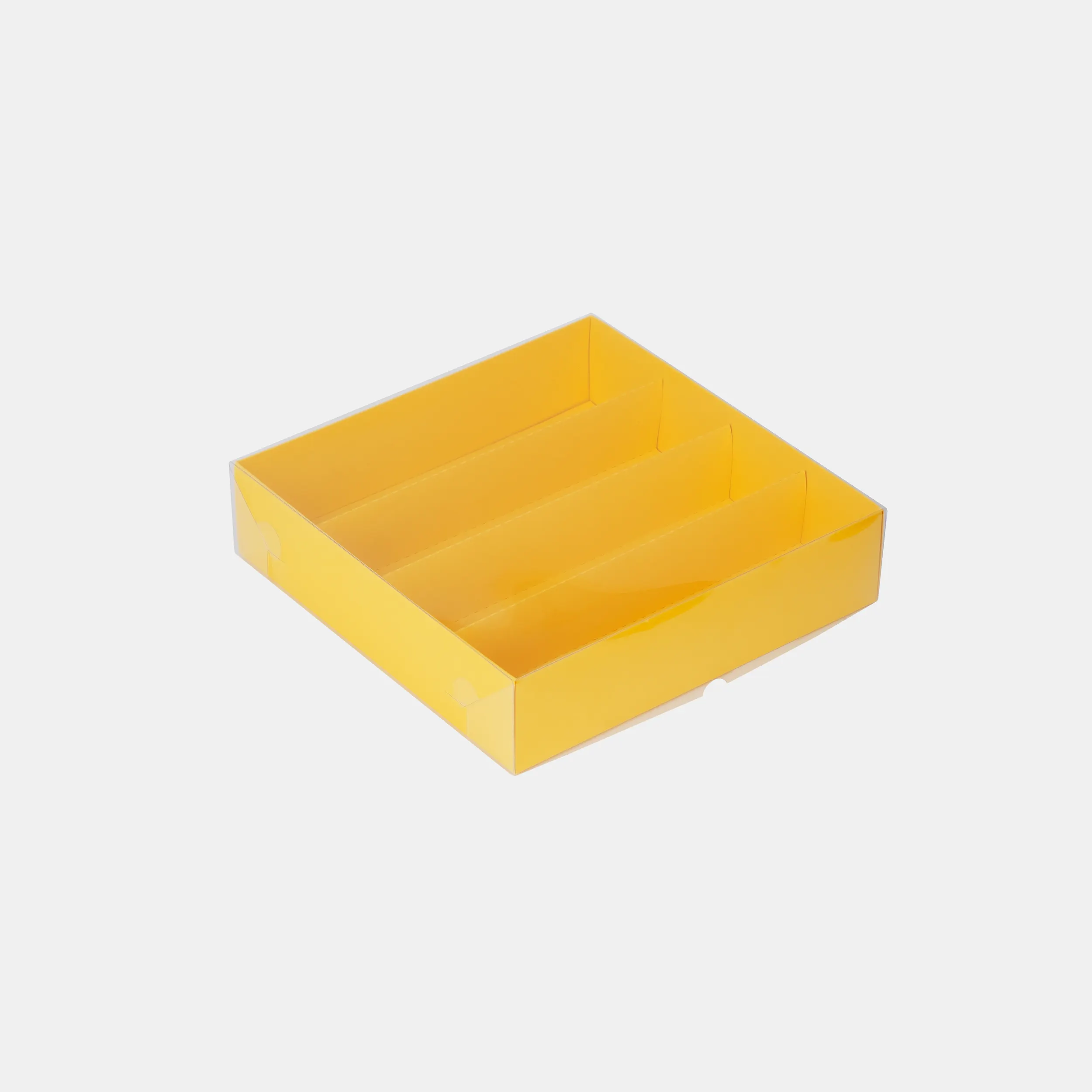 Коробка для макаронс с пластиковой крышкой 227*227*55 мм (желтый)