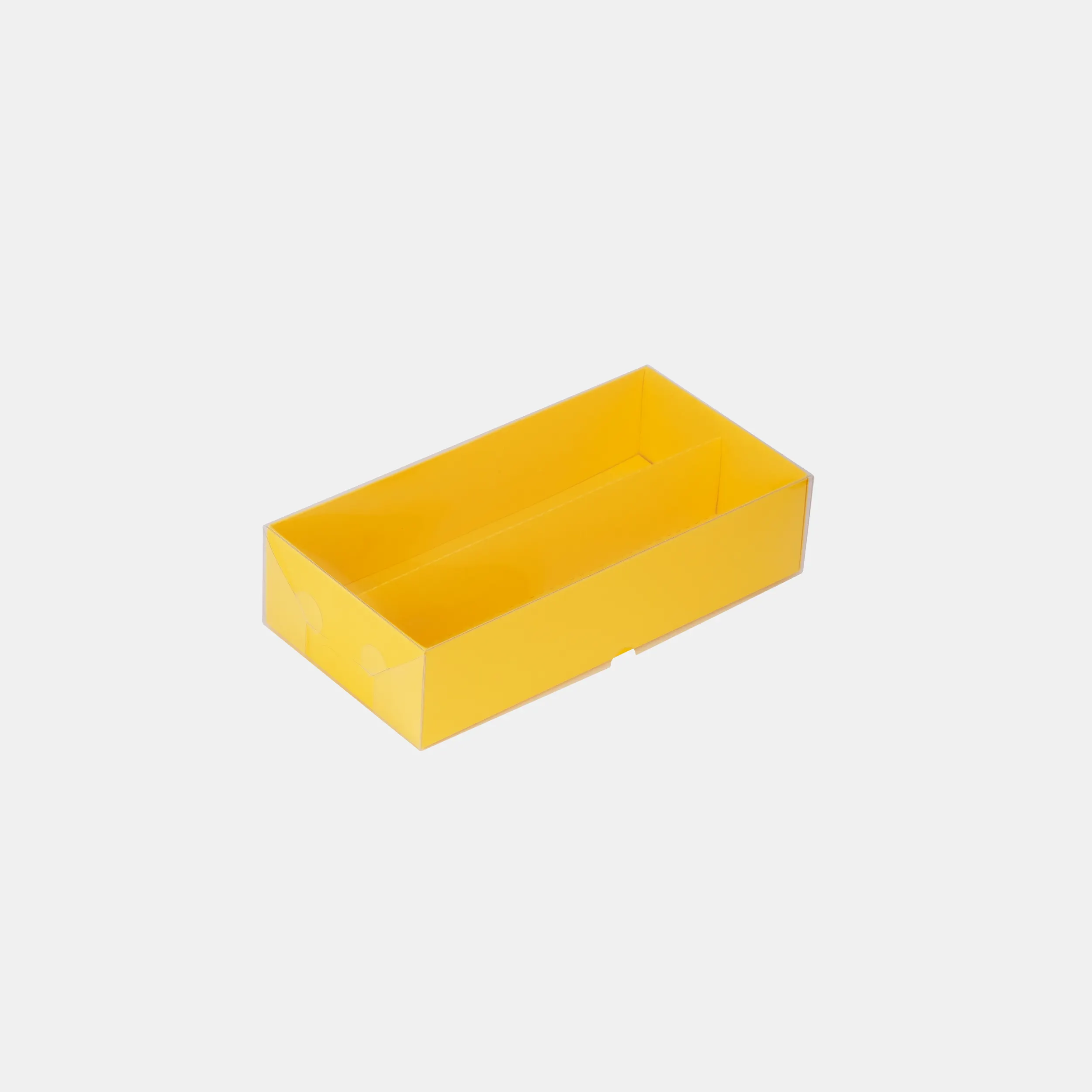 Коробка для макаронс в 2 ряда, 227*114*55 мм с пластиковой крышкой (желтый)